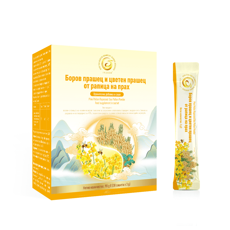 Съдържа: Боров прашец с безценните си 268 съставки допълнен от белтъци, въглехидрати и мазнини, витамини и минерали, ензими – над 250 градивни вещества от рапицата. Високопротеинова храна с нисък гликемичен индекс.