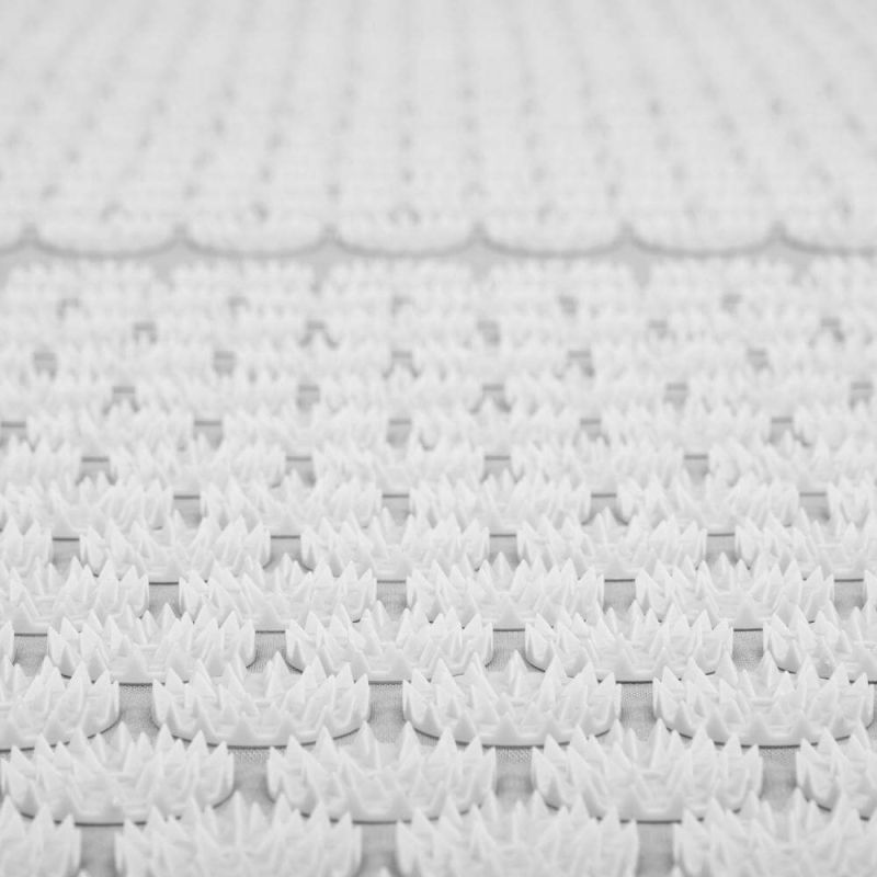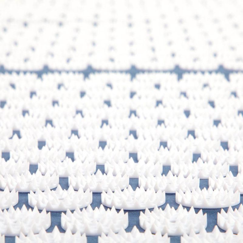 Свалящия се калъф на килимчето е изработен от памук. Килимчето е с пълнеж от дунапрен. Игличките за акупресура са изработени от ABS пластмаса.