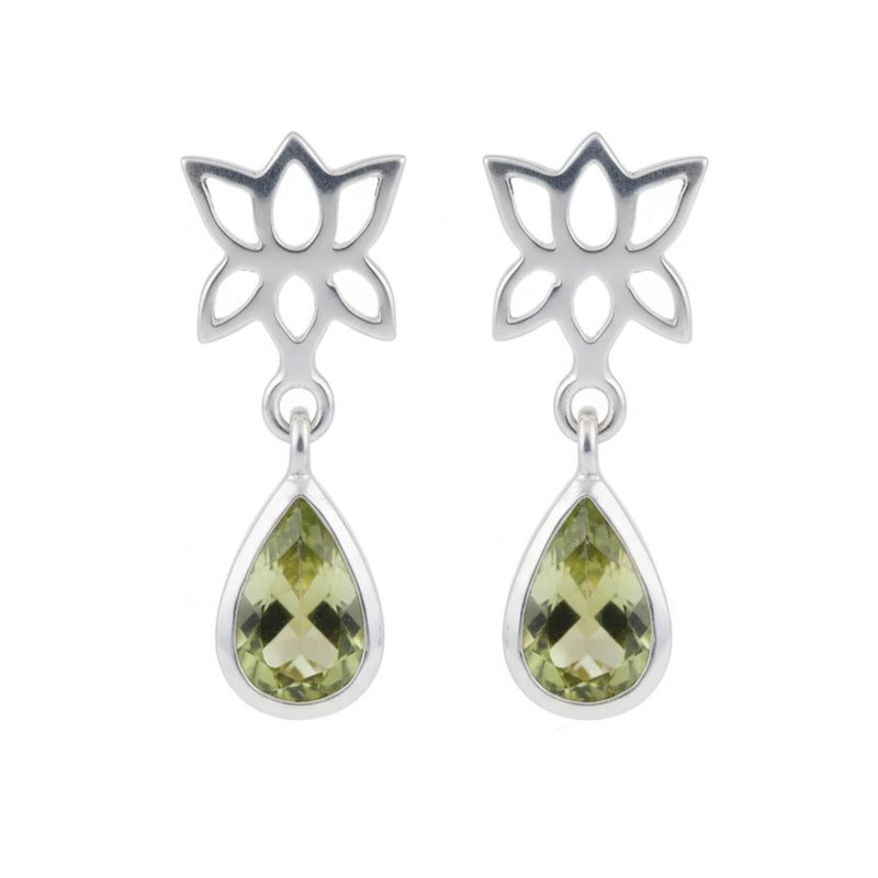 Обеци с лотос и скъпоценен камък Сребърни, перидот