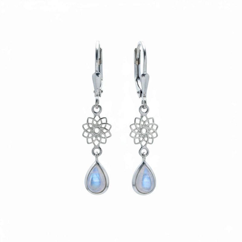 Обеци Мандала със скъпоценен камък Сребърни с лунен камък
