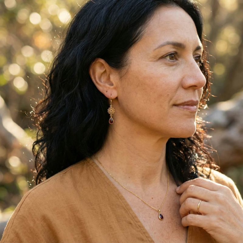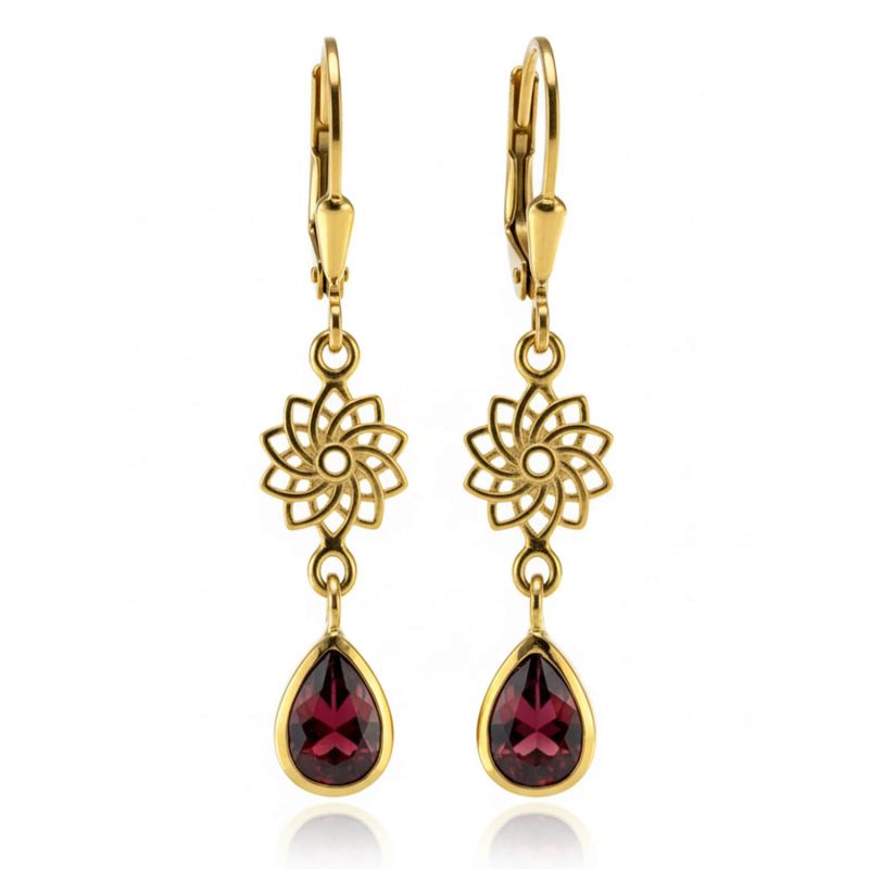 Обеци Мандала със скъпоценен камък позлатени с гранат