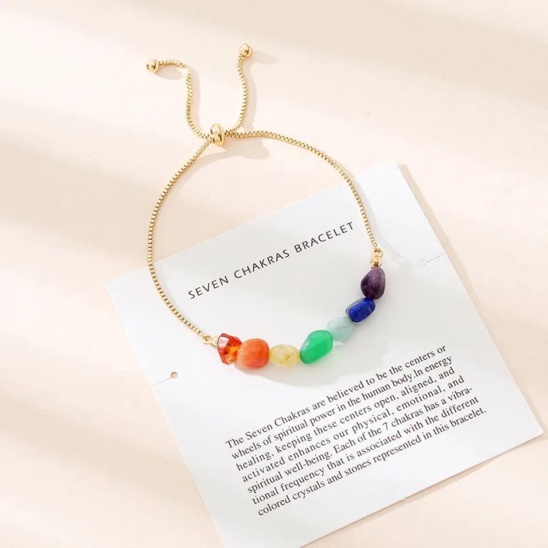 Използвани са 7 вида естествени камъка, всеки асоцииран с една от чакрите, и черен Оникс като основа, който премахва негативната енергия