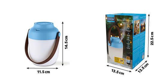Преносим благодарение на дръжката и акумулаторната си батерия, той осигурява светлина и отблъсква комарите.